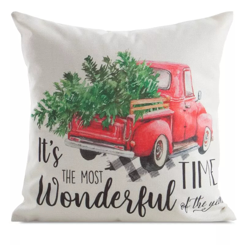 - O față de pernă elegantă de Crăciun de la Eurofirany, cu imprimeu de mașinuțe și brazi de Crăciun. Fabricată din poliester durabil, este moale și ușor de întreținut. Perfectă pentru camerele de zi și dormitoare în acest sezon de sărbători.