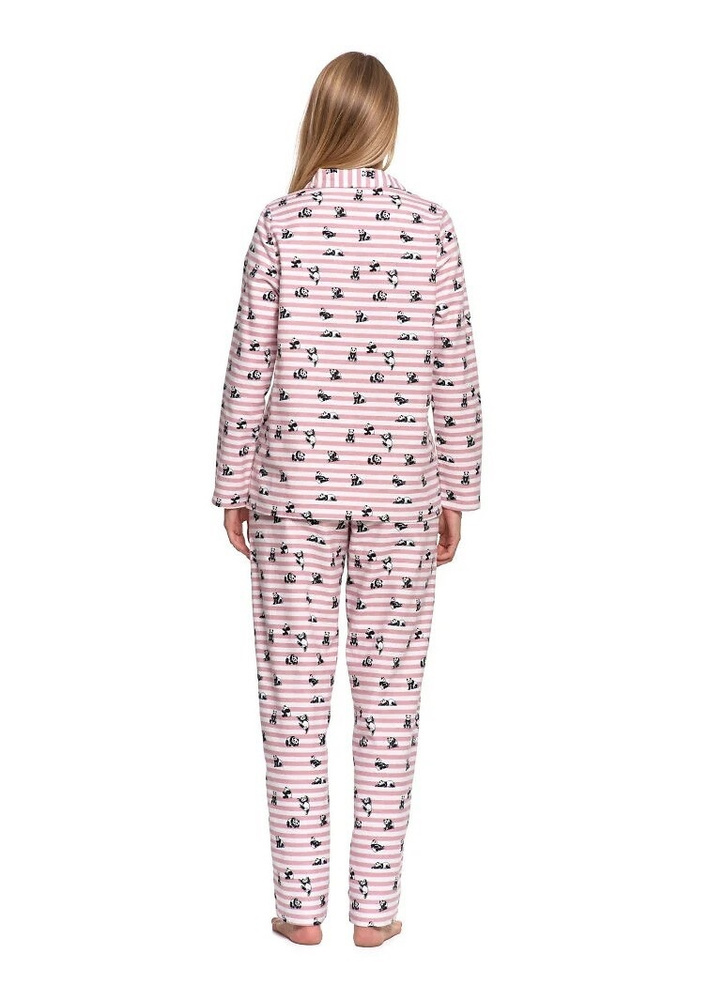 Pijamale pentru femei Moraj PDD6300-002 roz - flanel de bumbac, cu dungi și motiv panda