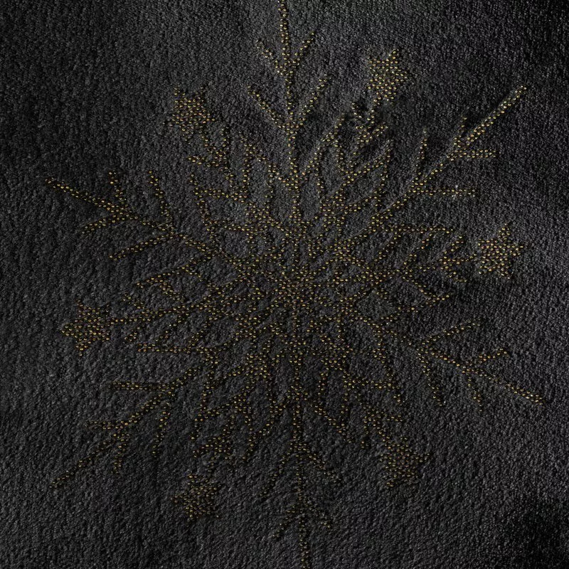 Pătură de Crăciun Eurofirany cu fulgi de zăpadă aurii și negru – Pătură moale din microfibră, 240 g/m²