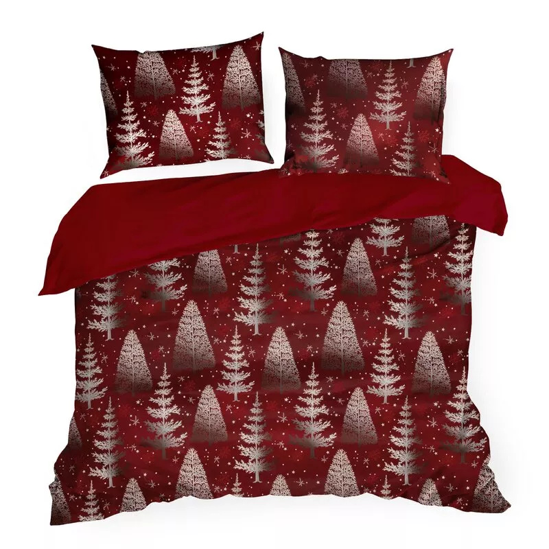 Lenjerie de pat de Crăciun din microfibră Rubin Eurocortains brazi de Crăciun roșu și alb - moale, ușor și ușor de întreținut, cu fermoar