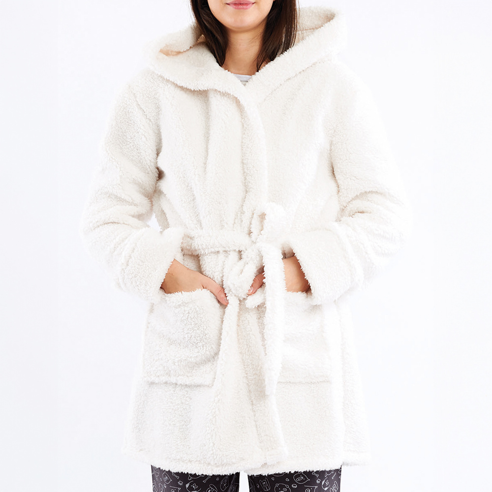 Halat de baie pentru femei Igrid Sorbetto - Alb, pufos cu glugă tip ursuleț de pluș