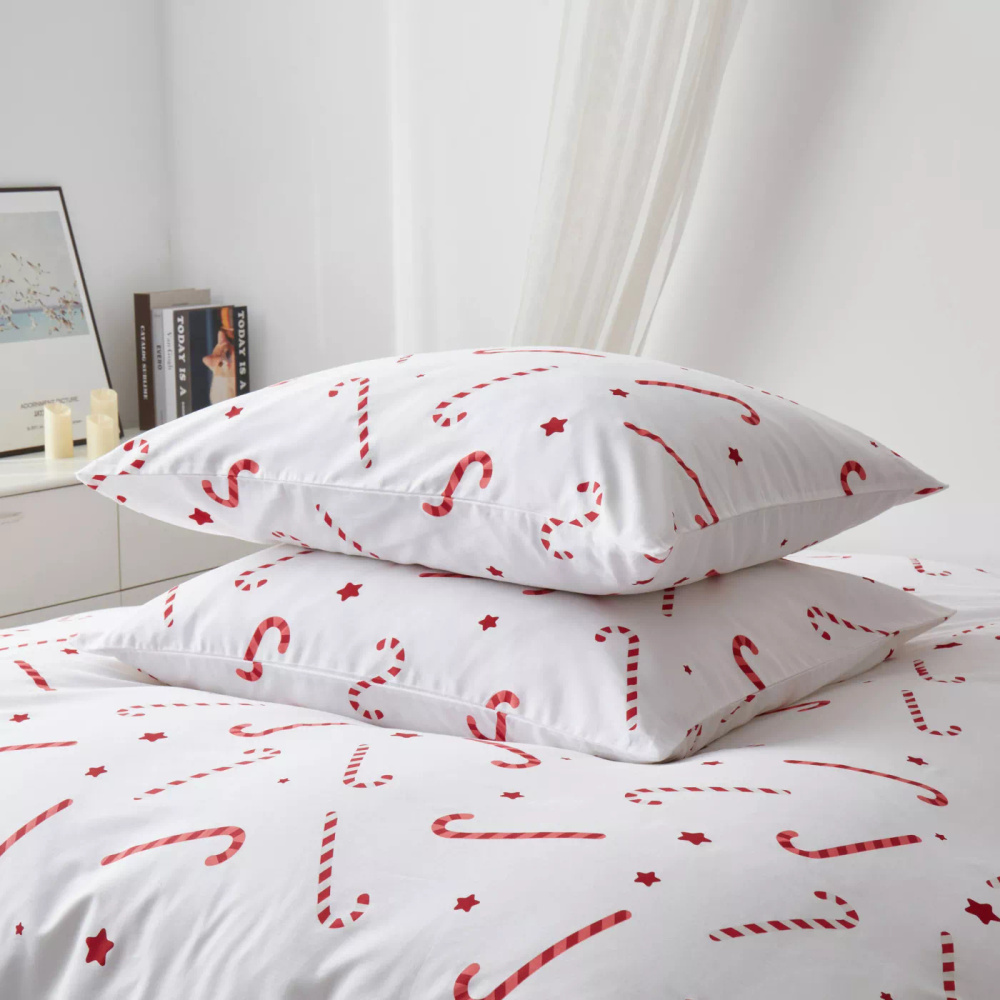 Lenjerie de pat de Crăciun din satin de bumbac Candycanes de la Spod Igły i Nitki, bomboane albe și roșii - elegantă și moale