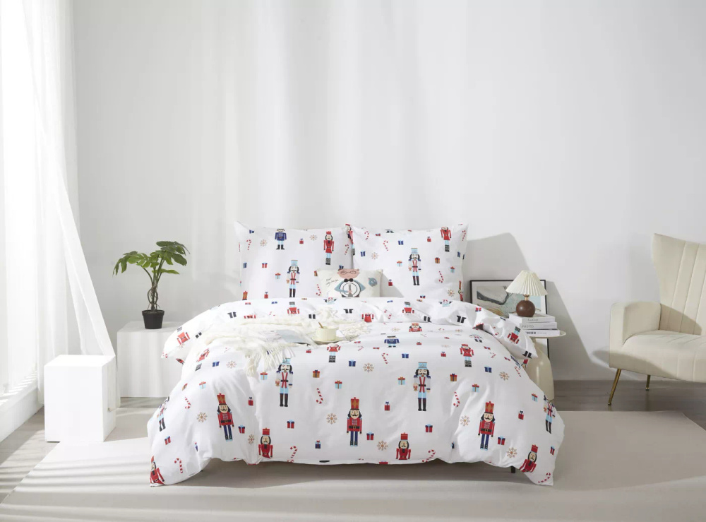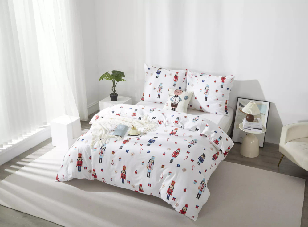 Set de lenjerie de pat de Crăciun din satin de bumbac de la Needle and Thread Nutcracker – Elegant și moale