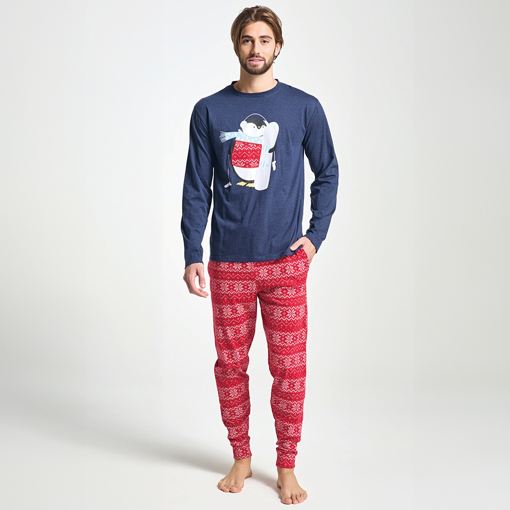 Pijamale Albano Sorbetto pentru bărbați, albastre - Crăciun, cu un pinguin