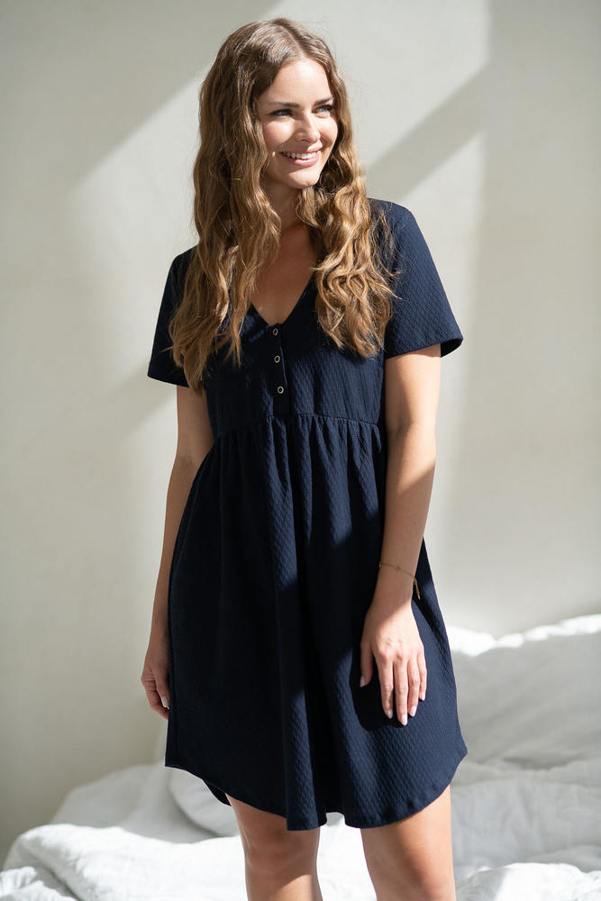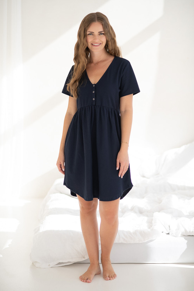 Cămașă de noapte Aurora Milk&Love pentru gravide și alăptare, bleumarin – bumbac, cu nasturi, producție poloneză