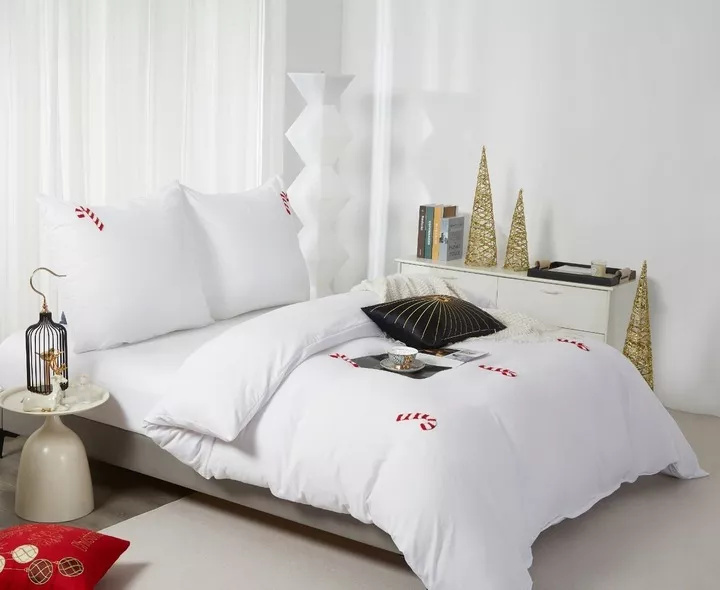 - Lenjerie de pat de Crăciun din microfibră moale și ușoară, decorată cu aplicații 3D fermecătoare cu turtă dulce. Închisă cu fermoar, creează o atmosferă caldă și festivă și asigură un somn confortabil iarna.