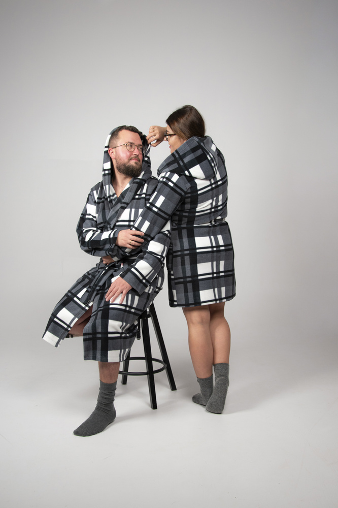 Întrebați despre produsHalatul bărbătesc De Lafense 034 este realizat din material moale, 100% poliester, oferind căldură și confort. Gluga, cordonul în talie și buzunarele îl fac practic și plăcut de purtat zilnic.