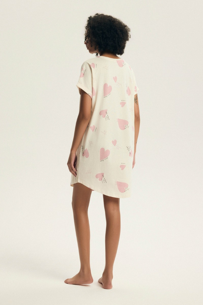 Imprimeul discret cu inimioare adaugă un aer feminin și plăcut, fără a fi exagerat. Această cămașă de noapte este potrivită nu doar pentru dormit, ci și ca piesă confortabilă de homewear, ideală pentru dimineți liniștite sau seri relaxante acasă.
