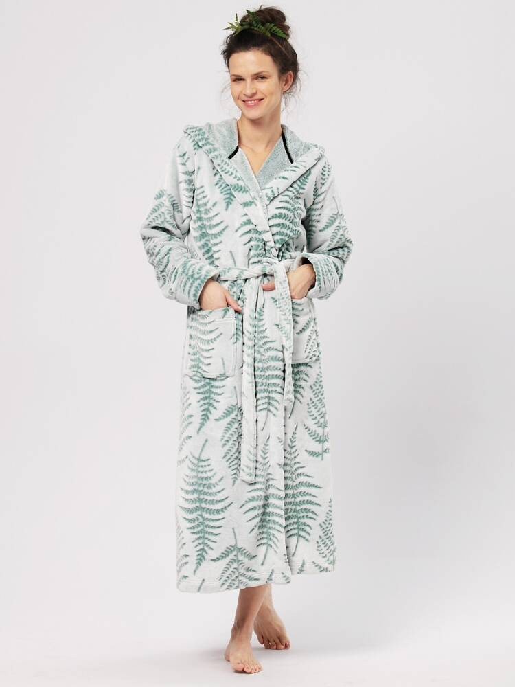 Halat de baie lung de dama din material moale, decorat cu un model delicat