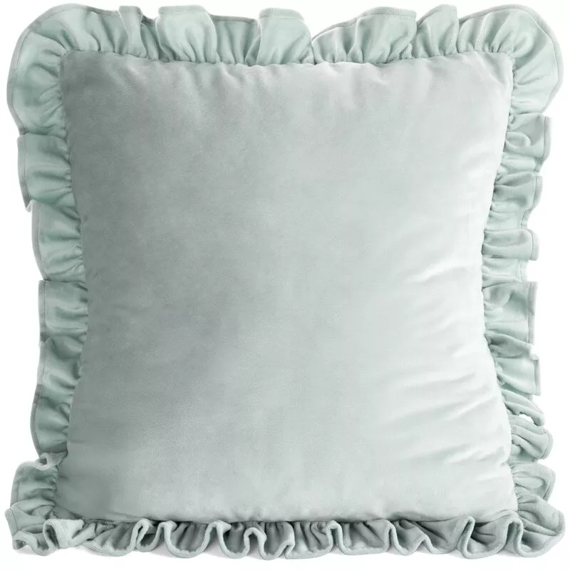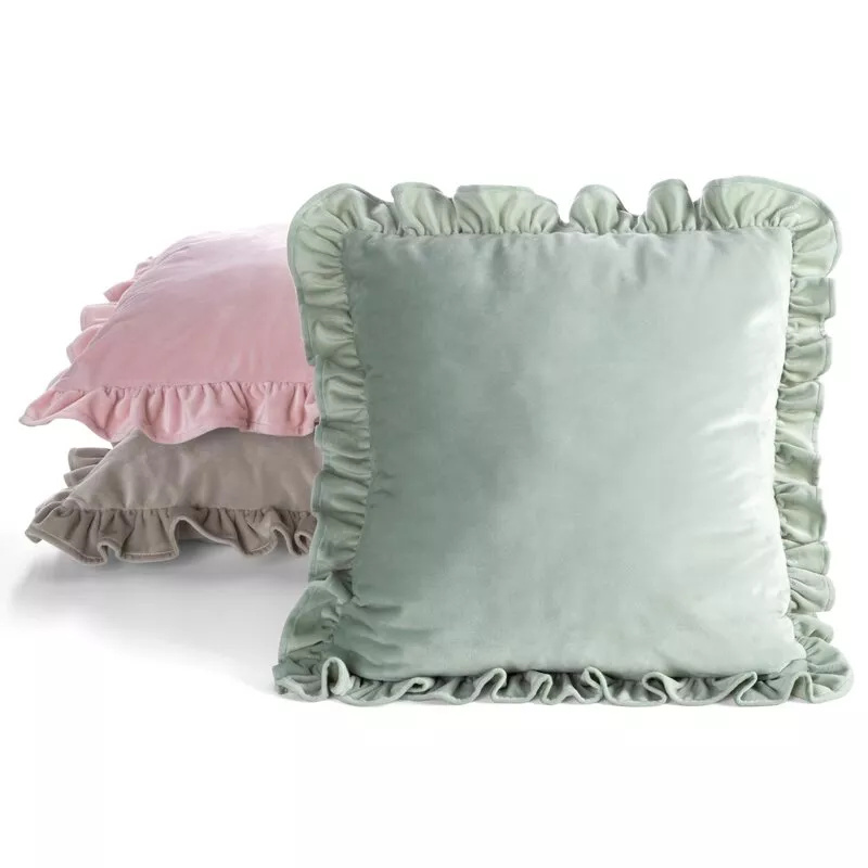 - Față de pernă 45x45 cm din catifea moale, verde salvie, cu volane decorative. Un accent elegant pentru canapea sau dormitor. Adaug-o în coș și reîmprospătează rapid decorul casei tale.