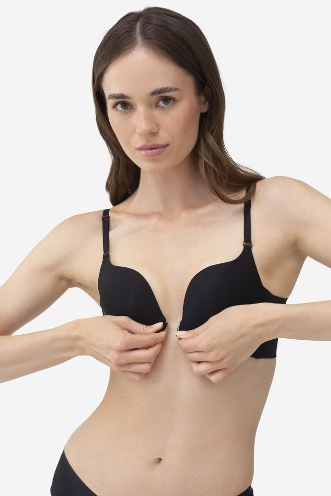 - Sutien push-up cu închidere frontală tip click-clack. Ridică, adună și mărește optic bustul – ideal pentru decolteuri adânci.