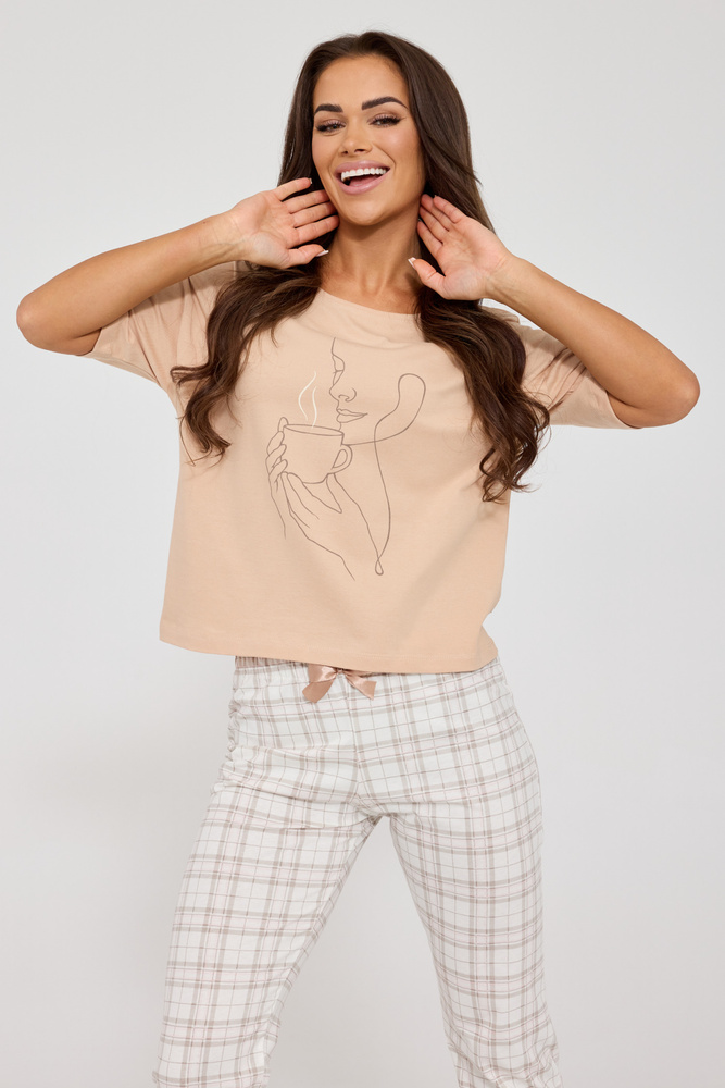 - Pijama damă Cornette 775/340 Morning din 100% bumbac natural – set cu tricou cu mânecă scurtă și pantaloni 7/8 în carouri, ideal pentru somn confortabil și dimineți relaxate acasă. Alege confortul natural zi de zi