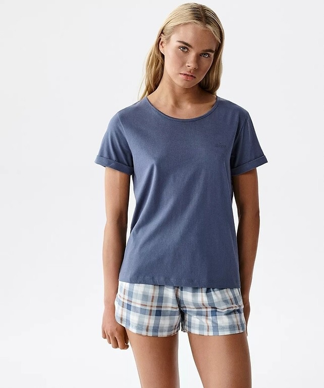 • Pijama damă Atlantic NLP-512 realizată dintr-un amestec moale de modal și bumbac. Tricou cu mânecă scurtă și imprimeu delicat, combinat cu pantaloni scurți cu model și buzunare practice. Un set confortabil pentru somn și momente de relaxare acasă.