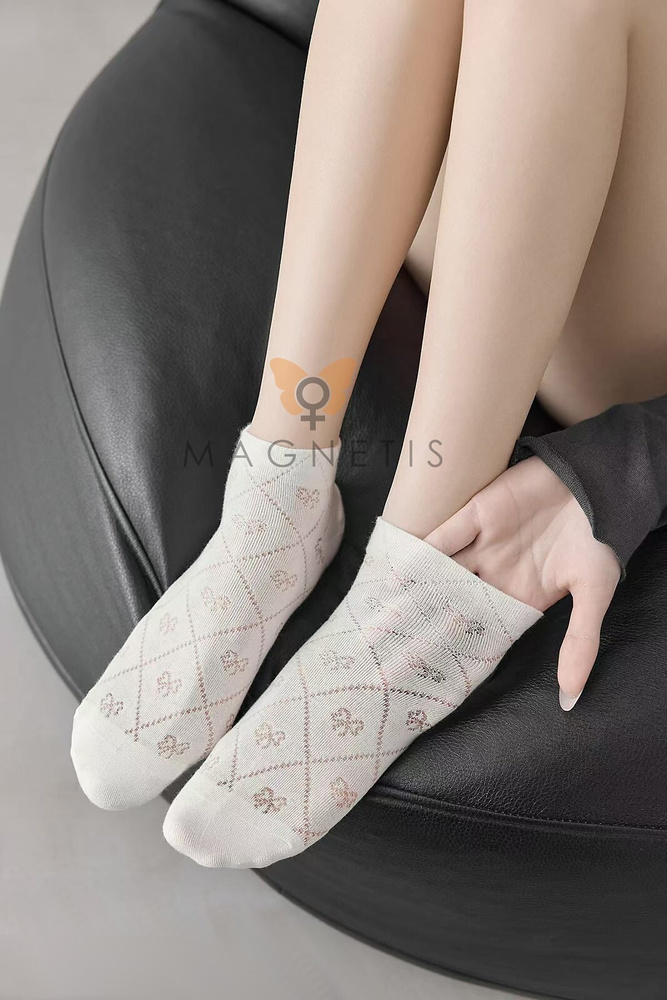 - Șosete invizibile de damă Magnetis CC-251102 din bumbac moale, culoare ecru, decorate cu modele delicate. Elastice, confortabile și plăcute la atingere, se potrivesc perfect pe picior. Ideale pentru sneakers, balerini sau purtare zilnică.