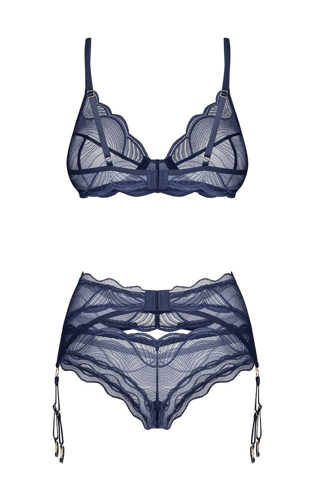 - Setul Nightly Blue 3-PCS de la Obsessive combină material transparent, dantelă fină și un elegant albastru închis. Sutienul cu cupe moi și armătură oferă susținere naturală, iar portjartierul reglabil completează un look feminin și seducător. Descoperă un