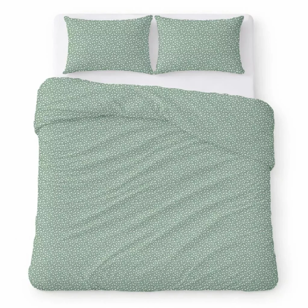 Setul include husă pentru pilotă și fețe de pernă, formând un ansamblu practic pentru pat. Husa pentru pilotă este prevăzută cu închidere cu nasturi, care ajută la menținerea pilotei în poziție și facilitează schimbarea lenjeriei.