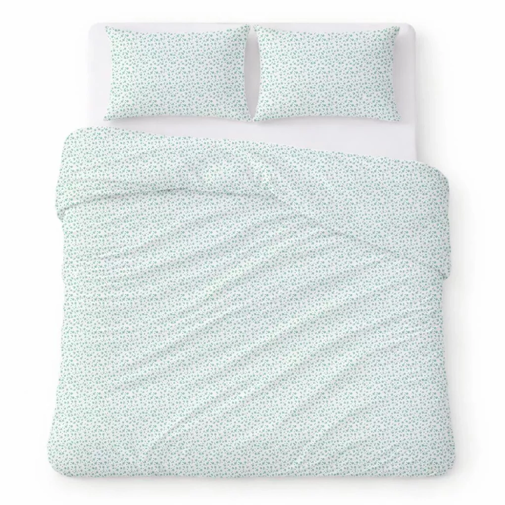 Lenjerie de pat din bumbac creponat set respirabil ușor de întreținut white with green flowers