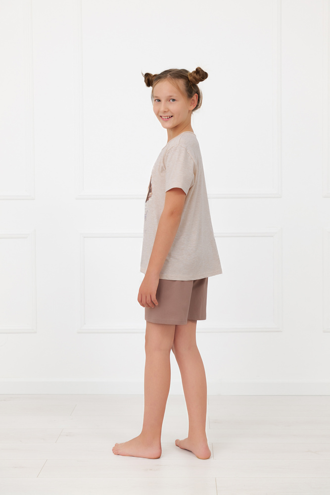 Șortul are o lungime confortabilă, o linie lejeră și talie elastică, care se adaptează bine fără să strângă. Setul este potrivit atât ca pijama, cât și ca îmbrăcăminte de casă.