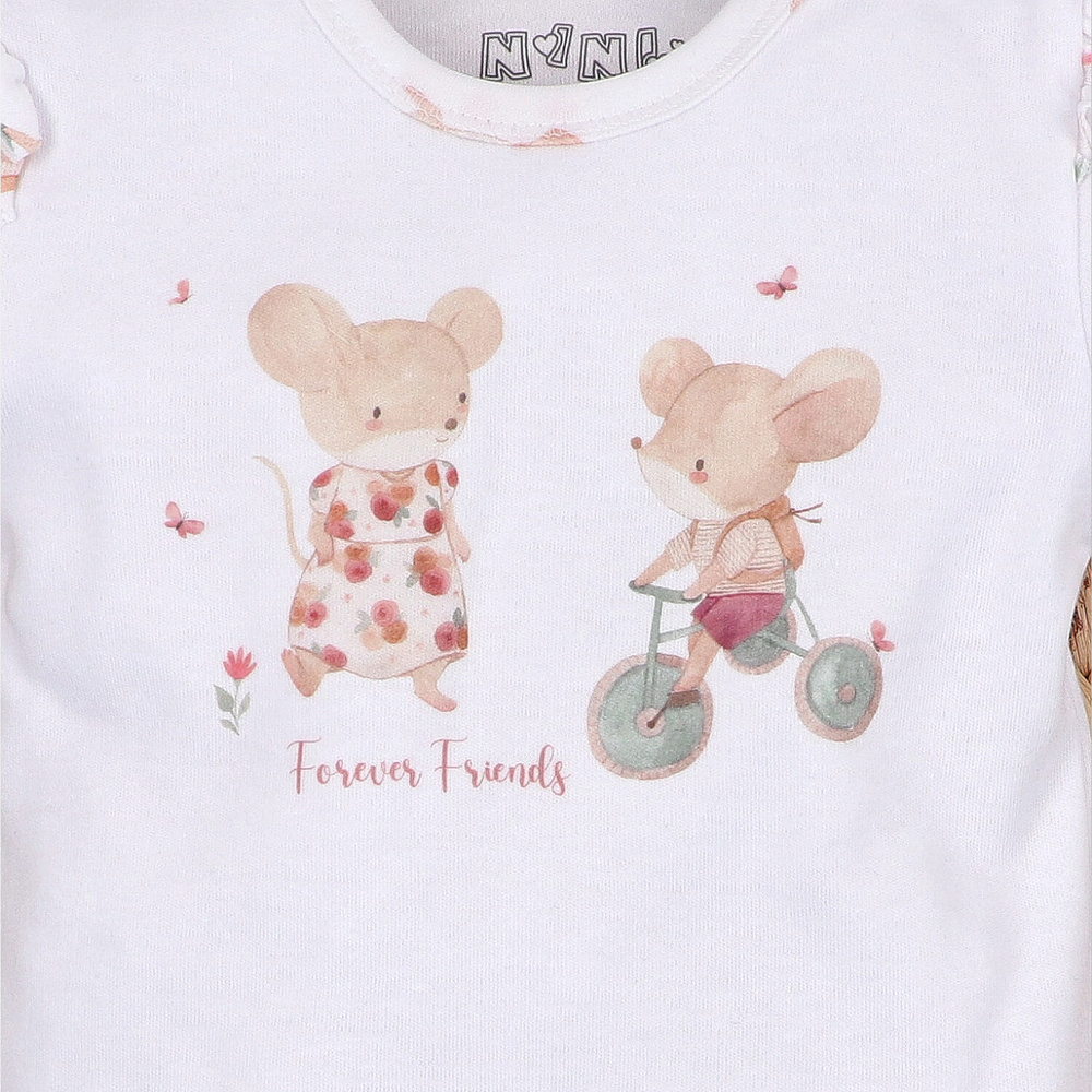 Body bebeluși Nini Little Mouse bumbac organic capse pe umăr mânecă scurtă