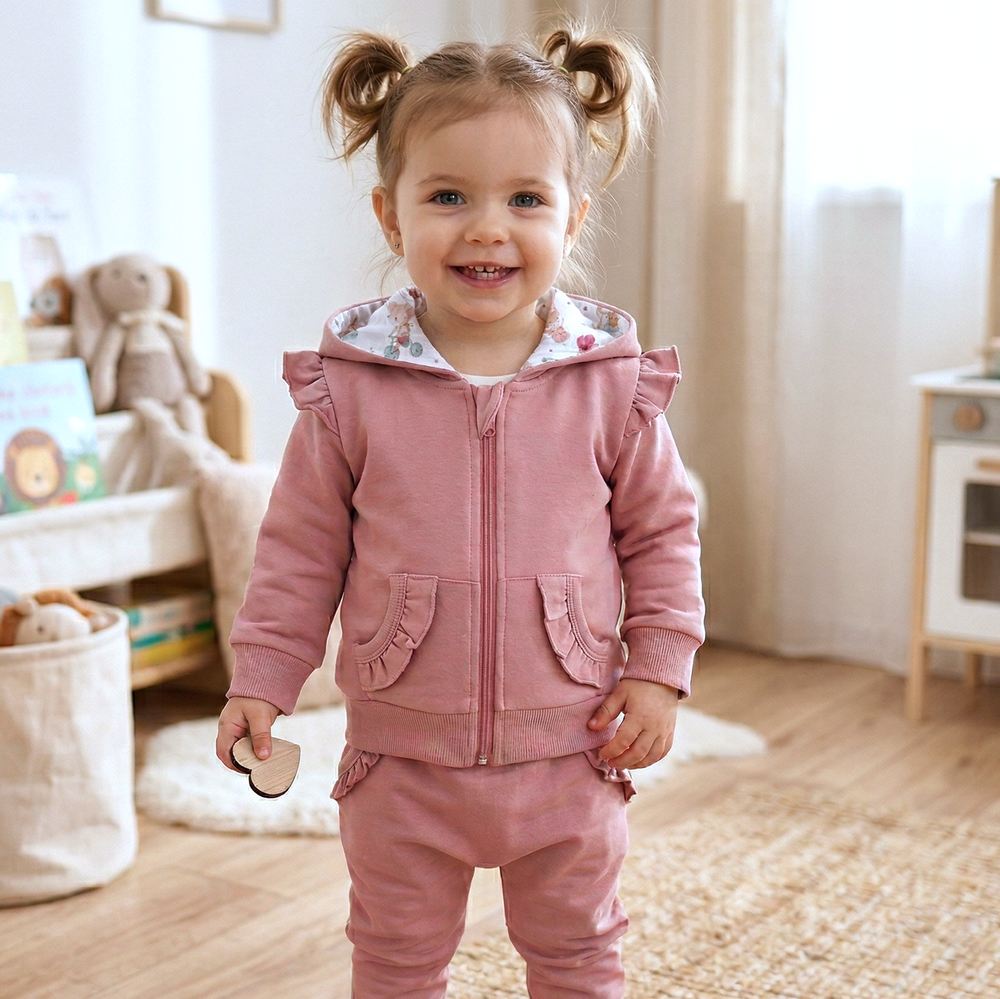 Fermoarul fără nichel este sigur și confortabil pentru utilizarea zilnică. Eticheta aplicată reduce riscul iritațiilor pielii. Croiala clasică permite combinarea ușoară cu pantaloni, colanți sau blugi, creând un outfit versatil pentru acasă, grădiniță sau joacă în aer liber.