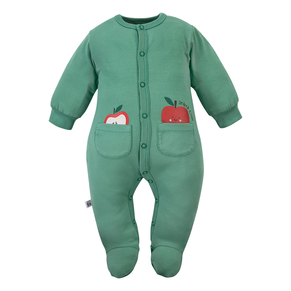 Salopetă bebeluș Eevi Snack Time verde bumbac confort