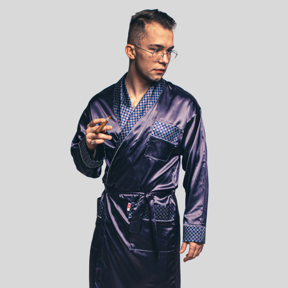 940 Forex halat de baie bărbătesc din satin - albastru marin