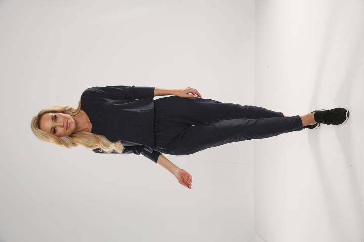 Salopetă pentru femei cu mâneci de 7/8 lungime. Legată la gât, cu o tăietură izbitoare în formă de lacrimă. Talie cu elastic pentru a sublinia silueta. Buzunare la șold. Picioare ușor conice. Croială lejeră, la modă, pentru confort și comoditate în timpul unei zile active.