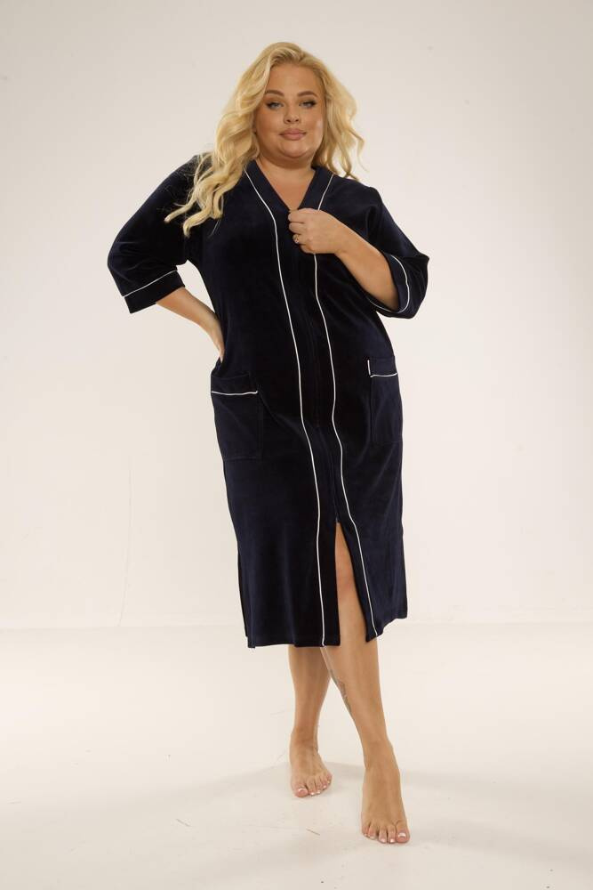 974 / 352 Velour Halat de damă Forex - albastru marin