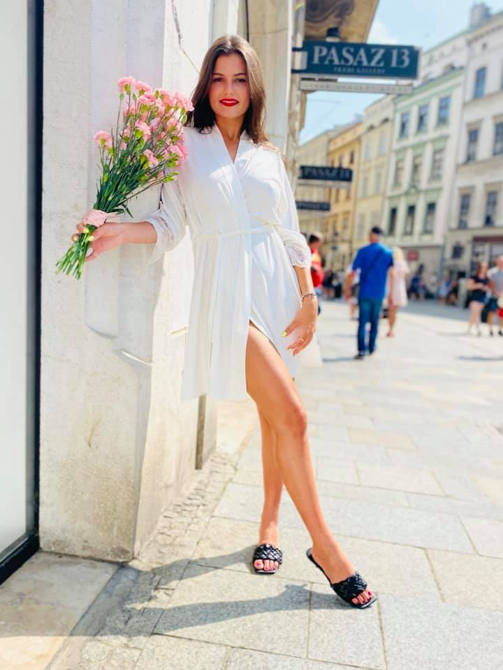 Halat de damă din viscoză de înaltă calitate 94% cu adaos de elastan. Scurt, legat la talie, cu mâneci 7/8. Manșete finisate cu dantelă ajurată.