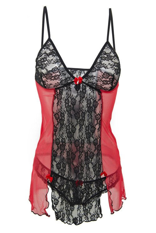 Seksowny komplet Bonita firmy DKaren składający się z koszulki i stringów. Przód halki tworzą profilowane miseczki uszyte z koronki, pośrodku ozdobna biżuteryjna łezka. Po bokach seksowne rozcięcia. Komplet wykonany z najwyższej jakości materiałów.