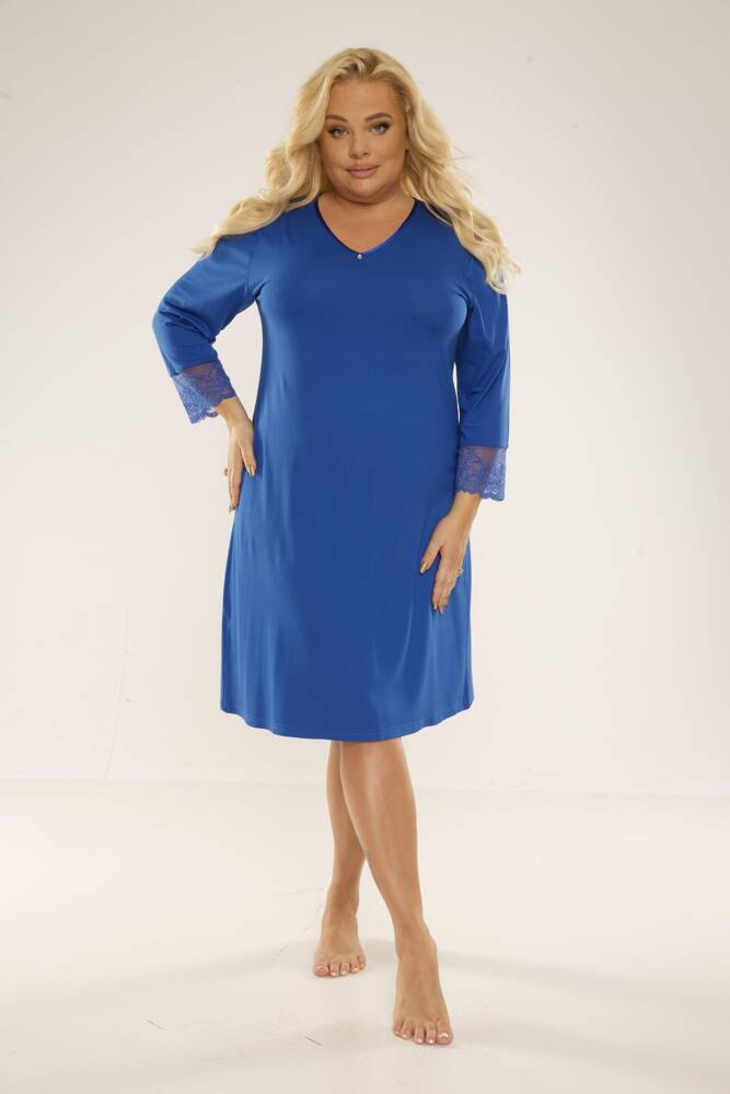 Cămașă de damă, din viscoză de calitate superioară, cu mâneci lungi de 7/8. Decolteu și spate în formă de V, manșete finisate cu dantelă largă cu motiv floral. Lungimea genunchiului.