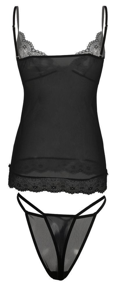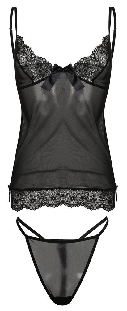 Uwodzicielski komplet tiulowy składający się z koszulki oraz string.