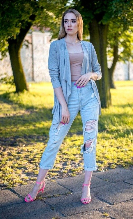 Cienki kardigan, idealny na chłodniejsze dni i wieczory.