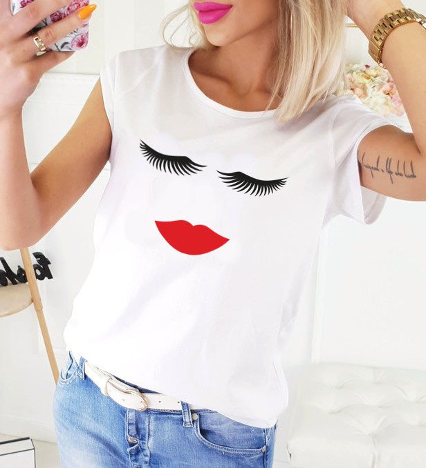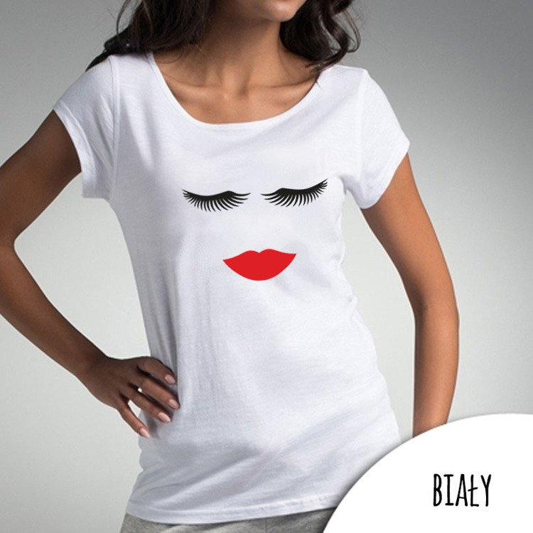 Bluzka dla mamy "RZĘSY USTA" Moocha biały