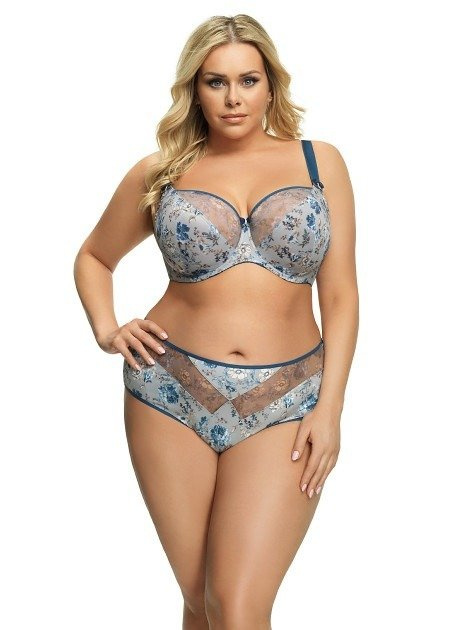 Elegant chiloți cu croială clasică. Fabricat din material tricotat moale, decorat cu un imprimeu floral. Inserții din plasă pe partea din față. Picioarele au fost tăiate cu o panglică elastică.