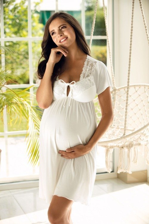 Tricou feminin excepțional de delicat dedicat viitoarelor mame și mamelor actuale. Decolteul este împodobit cu dantelă rafinată și există o cravată la nivelul sânilor pentru a facilita alăptarea. Material tricotat moale, elastic, foarte plăcut la atingere. Culoarea ecru și forma minimalistă îi conferă un aspect șic și glamorous. Fiecare mamă poate arăta elegant și se poate simți confortabil cu ea.