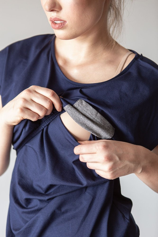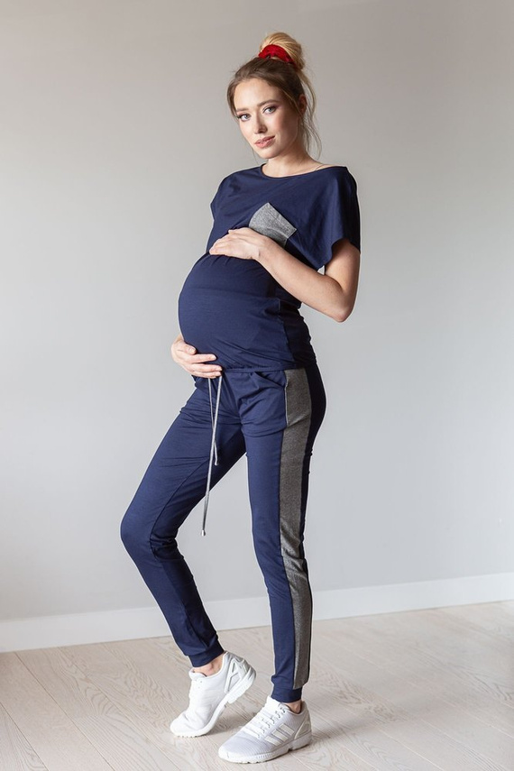 .Komplet dresowy z krótkim rękawem wykonany z wysokiej jakości dzianiny.Idealny zestaw dla przyszłych i obecnych mam. Klasyczny a jednak stworzony specjalnie z myślą o mamach komplet dresowy to połączenie wygodnych spodni z wysokim pasem z bluzą, która dzięki odciętej górze pozwoli wygodnie nakarmić malucha.