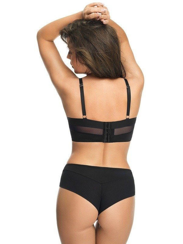 Sutien Phenomenal push-up push-up cu armătură, confecționat din țesătură lucioasă, în linia superioară plasă de tul delicată căptușită cu țesătură bej. Are curele de umăr reglabile, nedetașabile. . Circumferință stabilă, cu os de balenă lateral. Spate larg cu 6 cârlige și ochi de închidere cu 3 trepte de ajustare a tivului.