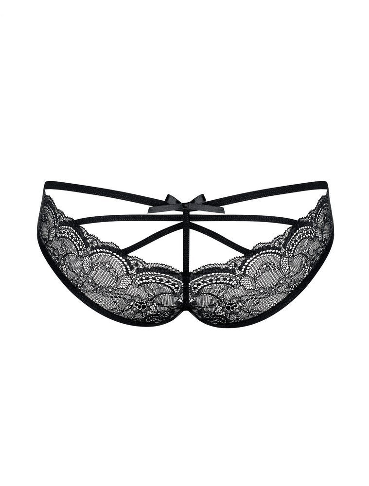 Tył z efektownie łączonymi paseczkami i kokardką seksownie podkreśla pośladki.