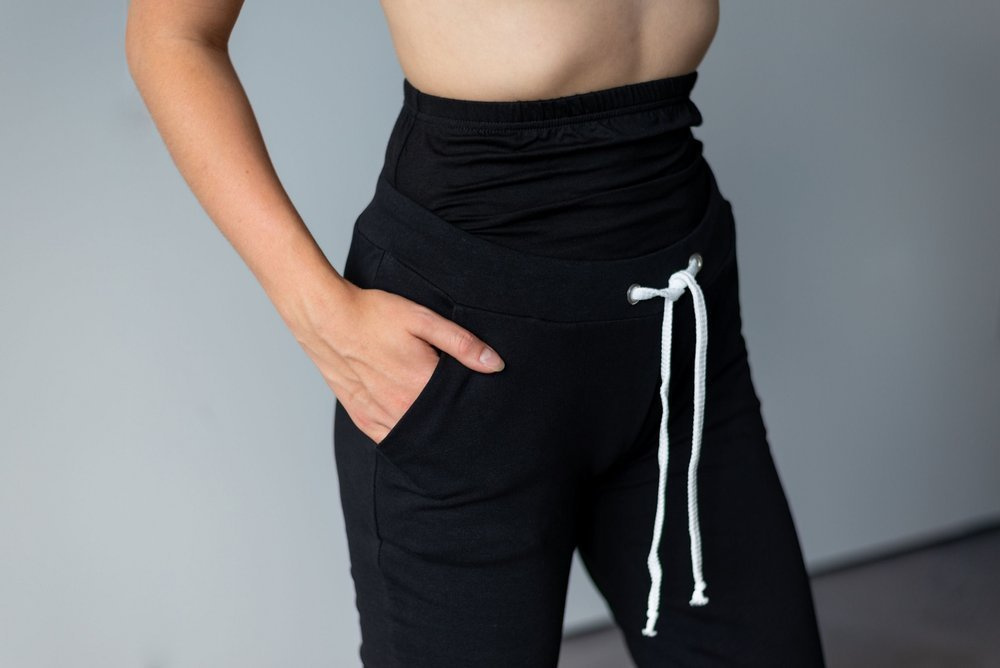 Spodnie dresowe wykonane z wysokiej jakości bawełny. Posiadają odpinany na napy pas który w czasie ciąży nachodzi na brzuszek dzięki czemu spodnie nie spadają i nie zwijają się pod brzuchem, zapewniając komfort użytkowania, a po tym okresie z łatwością może zostać odpięty i możesz użytkować spodnie jak każde inne .