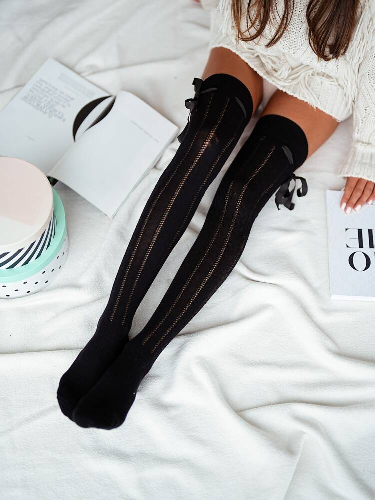 835 Wstążka Zakolanówki damskie Milena - czarny