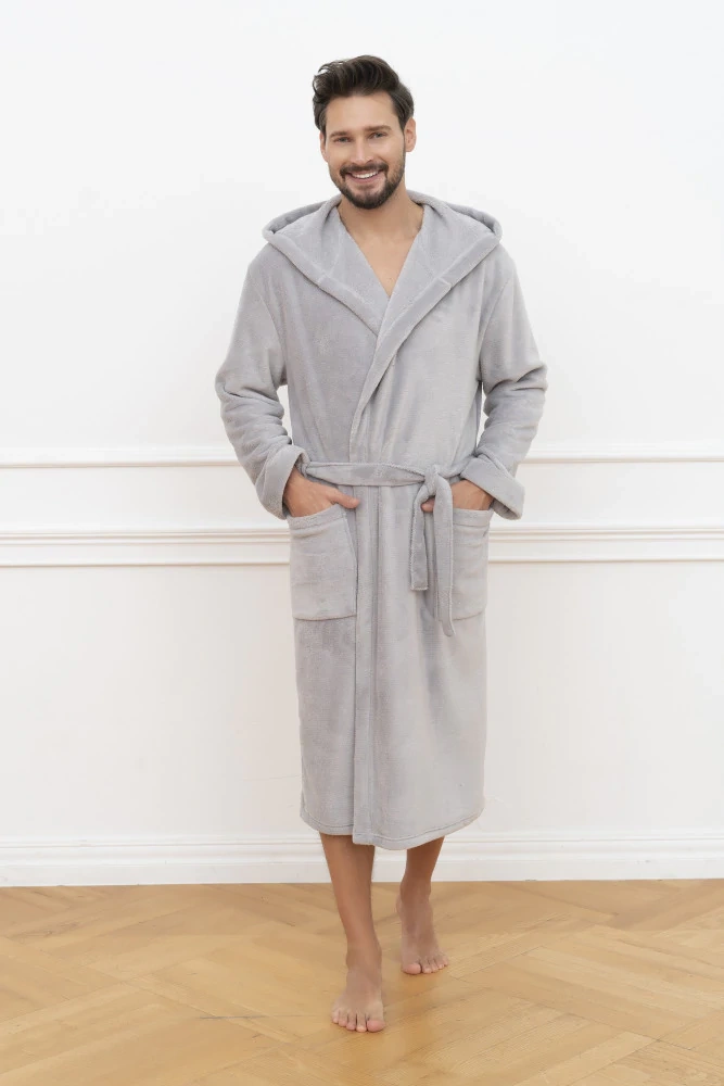 Mimas Halat de baie cu glugă pentru bărbați Italian Fashion - gri