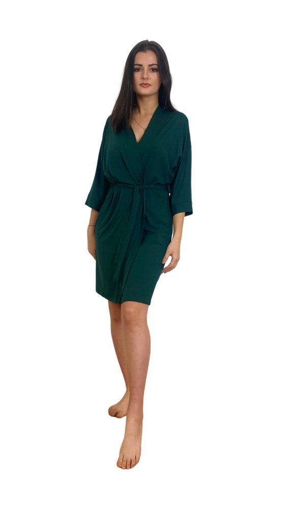 Halat de baie pentru femei moale și plăcut la atingere, cu legare practică. Model foarte funcțional, fabricat din viscoză moale. Vrei să te simți la modă și elegant? Acesta este halatul pentru tine. Comoditatea și moliciunea vor face ca cafeaua dvs. de dimineață să aibă un gust delicios.