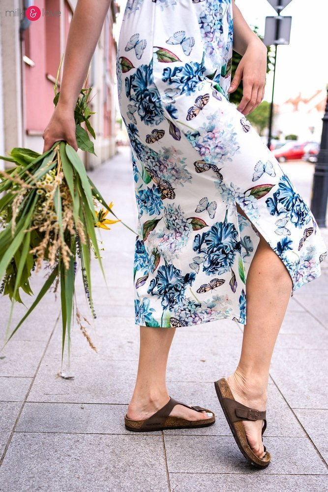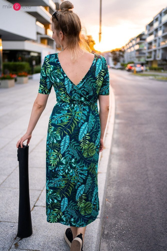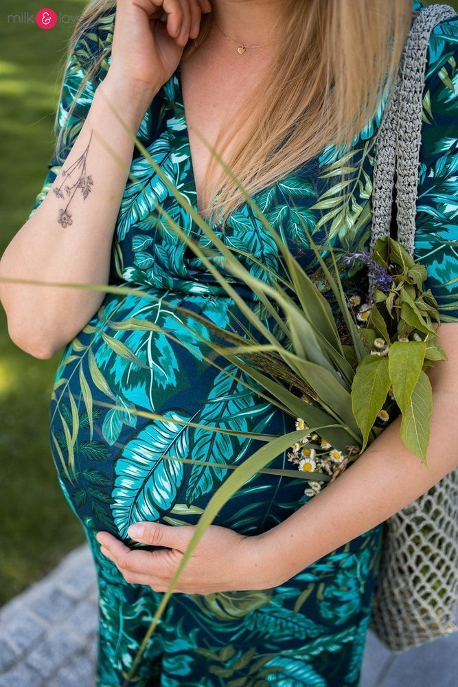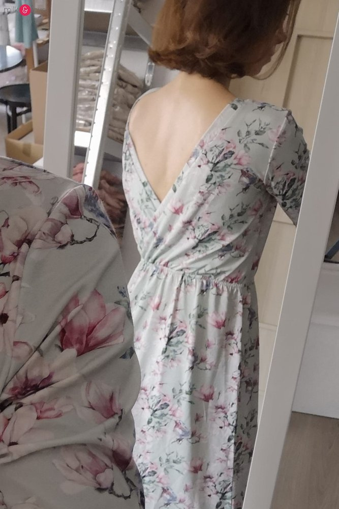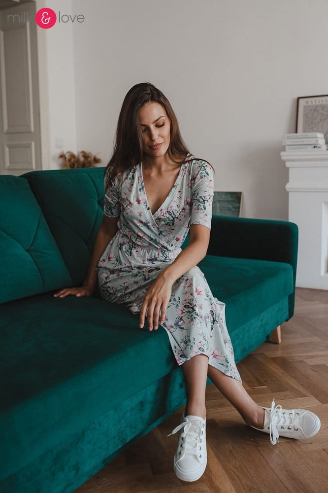 Sukienka ciążowa i do karmienia Two Ways LONG Milk&Love miętowa w magnolie i ptaki