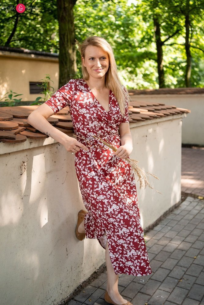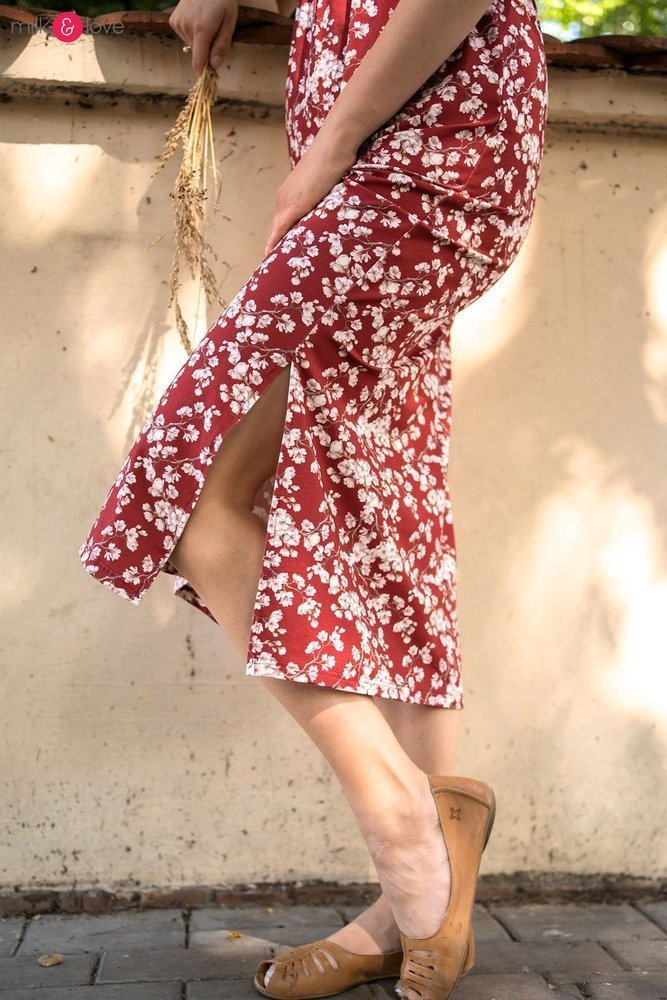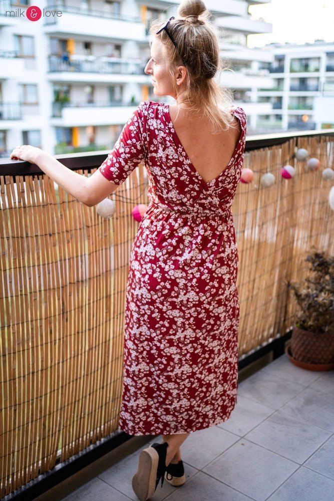 • Możesz ją nosić z dekoltem z przodu - wtedy też może służyć jako sukienka do karmienia piersią, lub z dekoltem na plecach