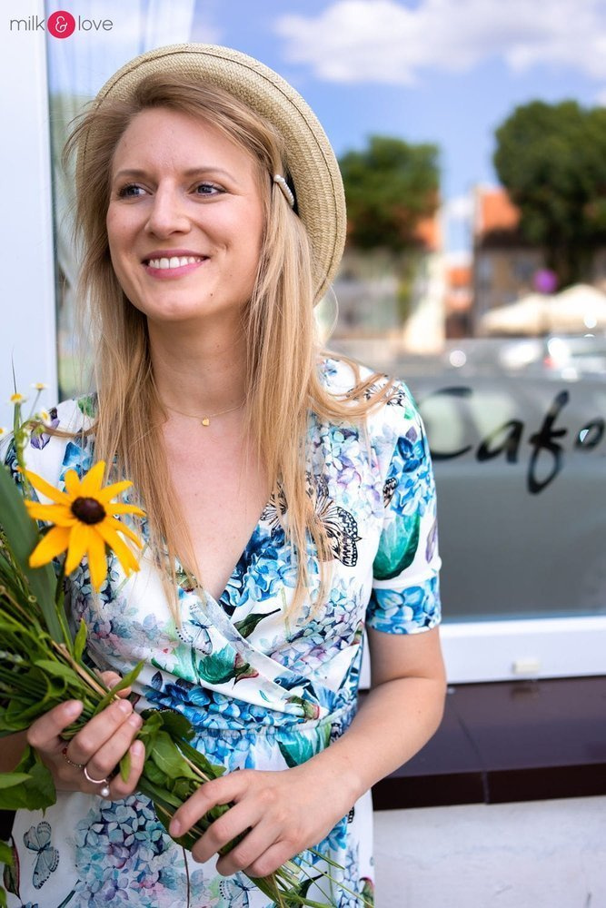 • Kopertowy dekolt umożliwia wygodne karmienie piersią,