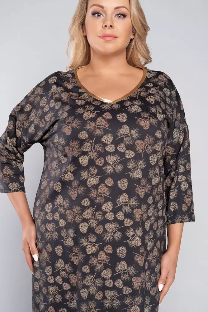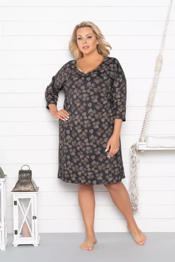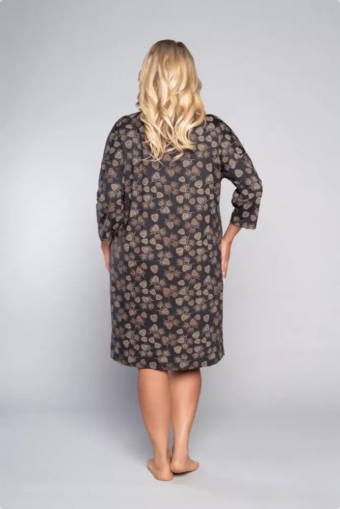 Cămașa pentru femei Pinnia este cusută din viscoză naturală și foarte moale, de cea mai înaltă calitate. Tăietura largă, foarte confortabilă, este o garanție a confortului în timpul somnului, care este atât de important pentru corpul nostru. Combinația frumoasă și contrastantă de tonuri de grafit și auriu atrage toate privirile și conferă modelului o eleganță extraordinară. Disponibilitatea sa până la mărimea XXXL este un avantaj suplimentar.