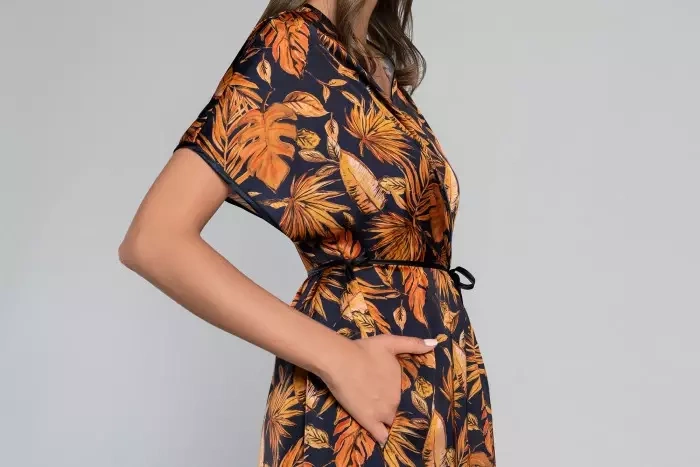În negru profund și frumos, care se potrivește de minune cu imprimeul auriu-roșu cu frunze de toamnă, și în satin fin frumos lucios, halatul Monstera este sinonim cu luxul și eleganța. Cu o cămașă sau o pijama cu același nume, vei crea un set unic și nimeni nu-și va putea lua ochii de la tine nici măcar acasă.
