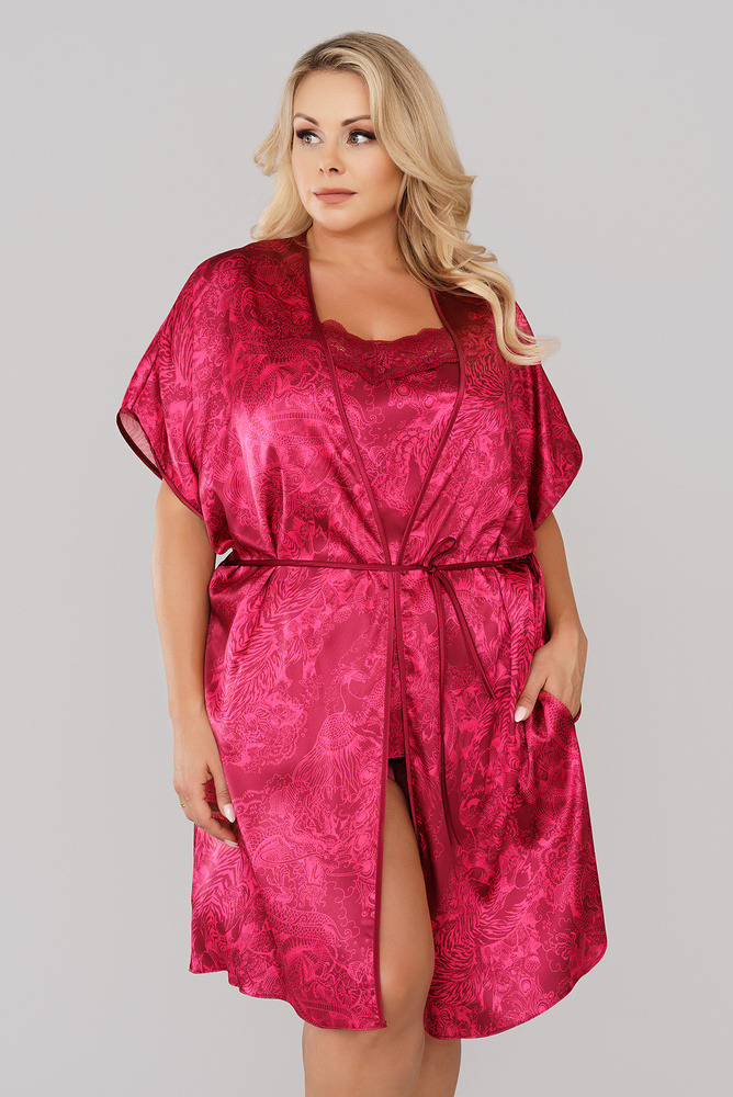 Halatul din satin Impresja este o garanție de clasă și șic. Culoare intensă de vin roșu și motive orientale, perfect pentru o întâlnire de seară cu iubita ta. Legătura din față și decolteul adânc în V vă vor accentua și evidenția frumos silueta. Cu pijamaua sau cămașa Impresja puteți crea un set unic și de neuitat.