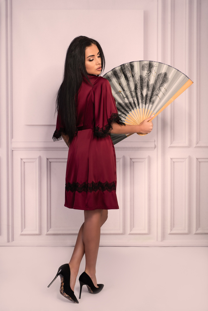 - piękny, satynowy szlafroczek w kolorze bordowym
